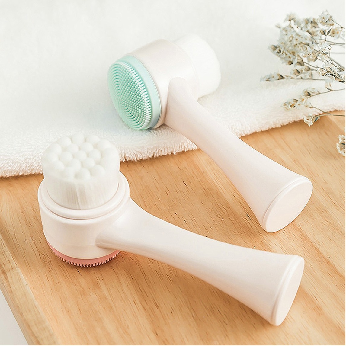 洁面仪是双面硅胶刷,可以深层清理,整个皮肤感觉细腻;手柄是弧形,拿着防滑舒适;仪器小小的,很实用;采用纤维毛,有效的清理污垢,一点不扎脸。搭配毛巾很实用强力吸水柔软,有防水墙纸不怕脏。