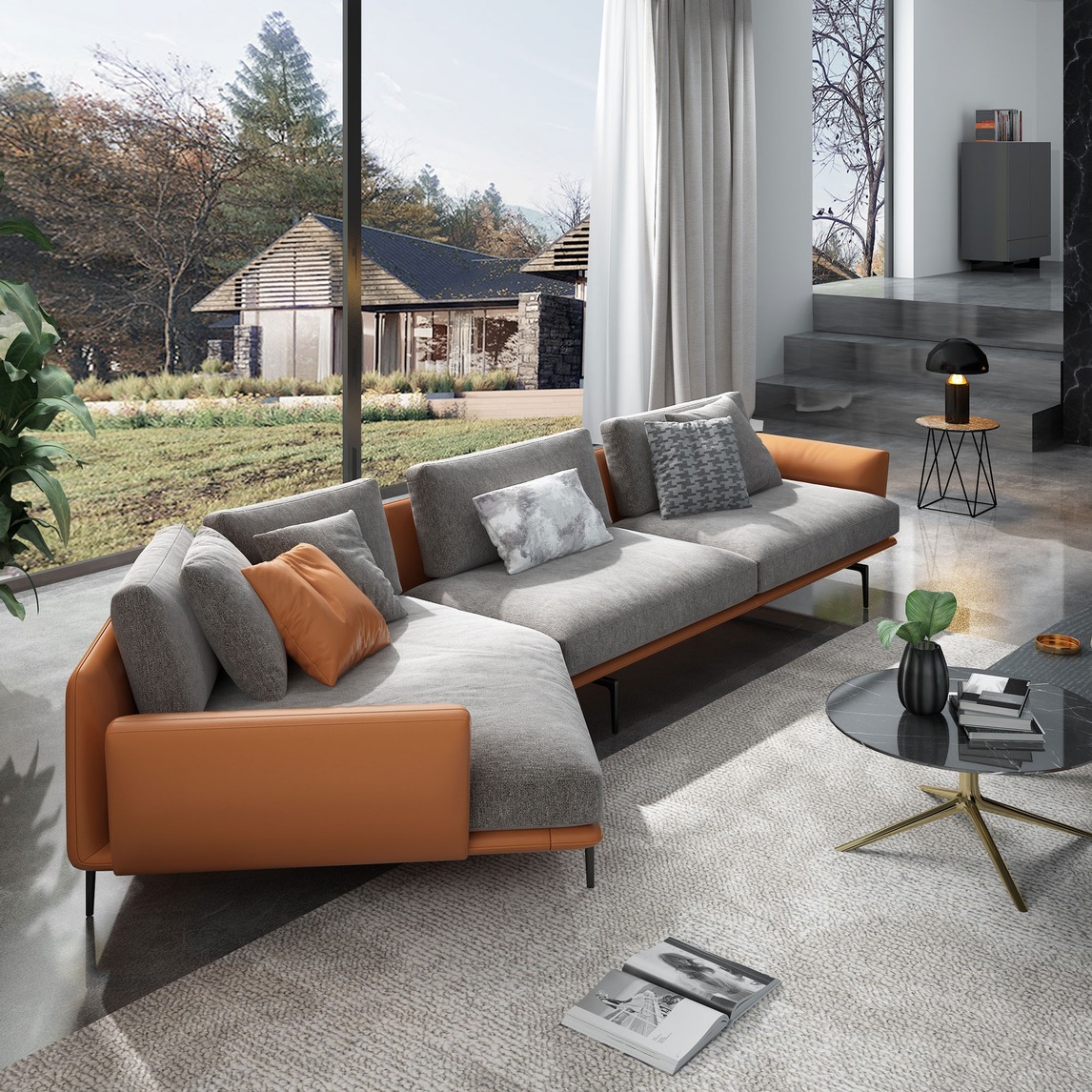 45°转角设计的意式皮布沙发,比传统沙发更加贴心,完全为了身体舒适而来。扶手内外的差异设计,不显臃肿,与轻奢金脚大理石茶几CP组合,为客厅空间带来高级质感的体验。 而大大的落地窗很好地将室外的自然景观...展开