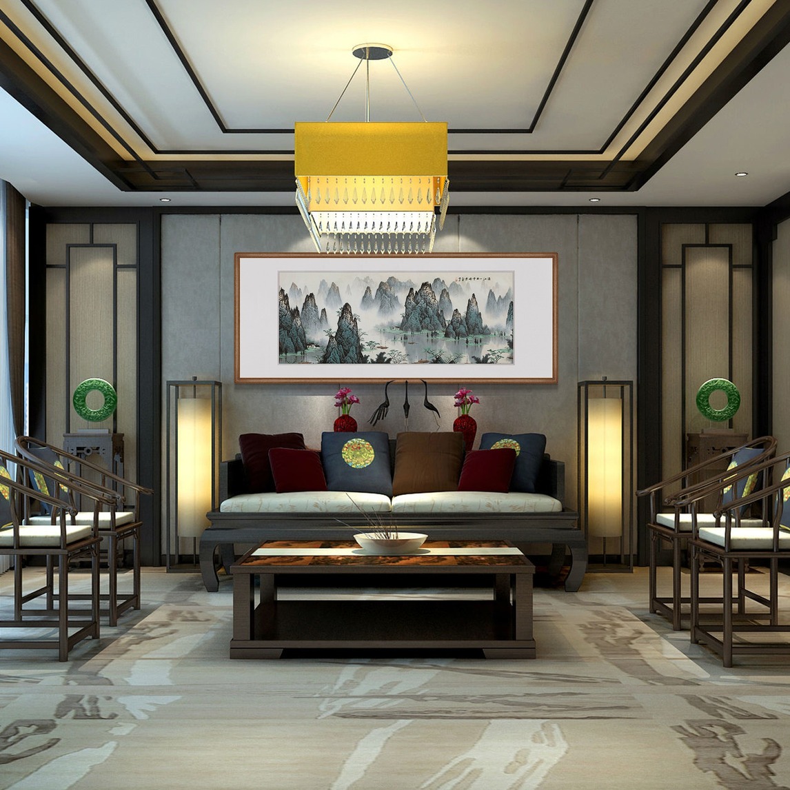 客厅是家的门面,也显示着屋主人的审美品位,和待客之道。稳重的色彩,大气磅礴的名家山水画,华丽高贵的的新中式吊灯,无一不是传统美学的传承。可以说是用气质或气场来阐述空间,在保留传统美学的精气神的基础上,...展开