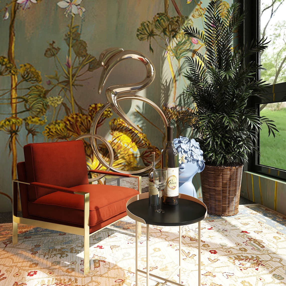 看似随意却用心摆放布局,画面展现的戏剧效果,带给人的想象力和艺术感。材料方面在家具上偏爱软材料,并且融入金属质感的材料。皮具和金属家具饰品的结合,更是使整个空间充满神秘感。