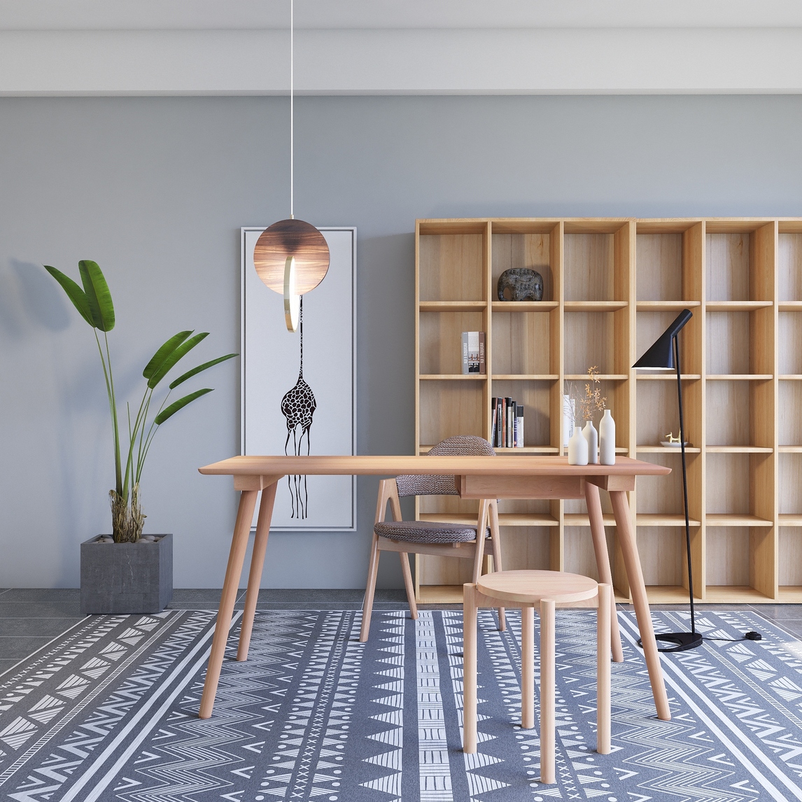 简约温馨设计风格 木色家具与灰色墙面结合 整体雅致温馨 表现出休闲自在的生活气息与自然自由的生活理念