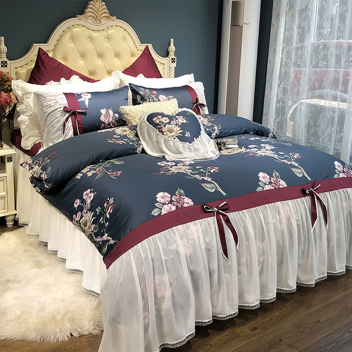 蕾丝点缀优雅尊贵,蕾丝点缀是一种品味,层层叠叠优雅大方轻奢而不张杨,增添床品的时尚气息,被套和枕套均有蝴蝶结装饰,印花和纯色,面料拼接,优雅美观。