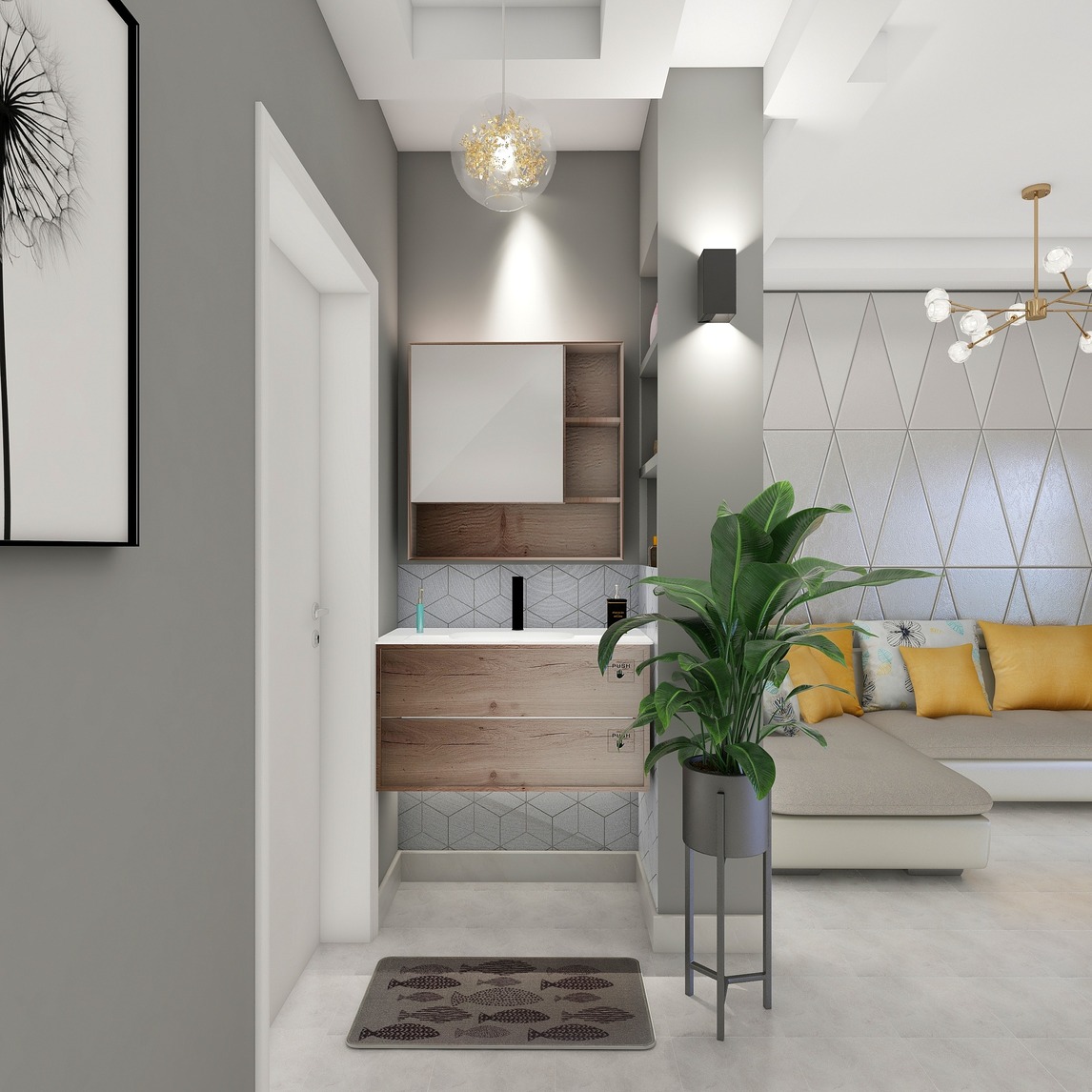 干湿分离的卫生间往往能增加好感,灰色乳胶漆搭配次浴室柜组合配上网红吊灯,感觉也挺高大上!简单明了,就对了!