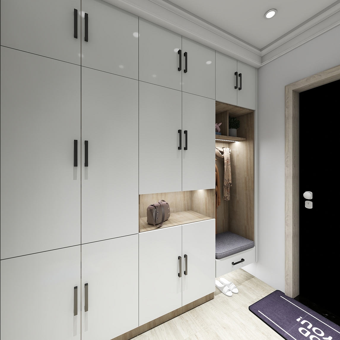 玄关柜子地下预留15公分,出门进门穿的鞋子直接塞在柜子地下,既不影响进出,又不会让家里变得凌乱,非常实用的设计。同样挂钩也有相同的作用,进门后把自己的包包外套直接挂起来,出门拿起就能走,北方有暖气的冬...展开