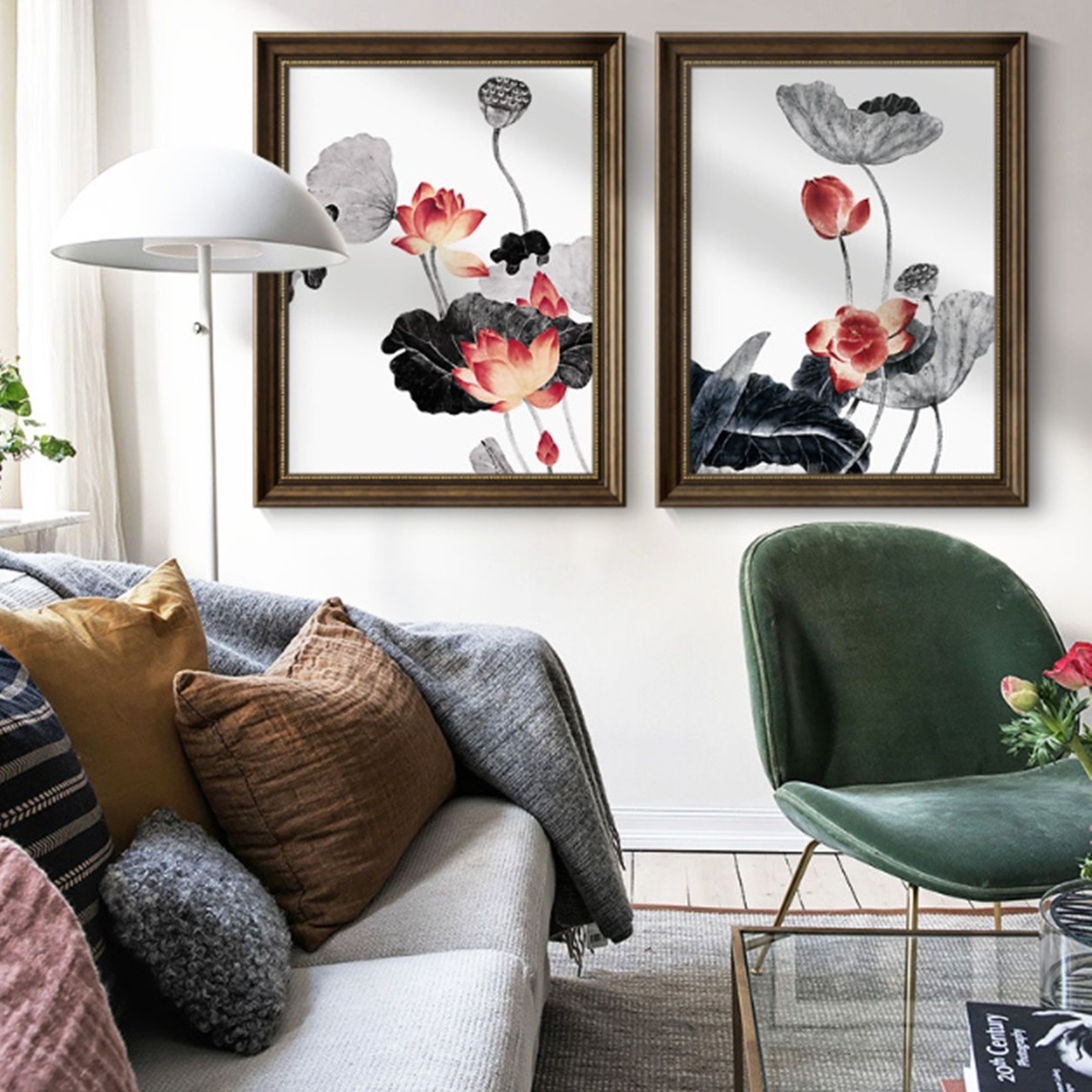 当北欧风撞上中国风,散发出中西不同的文化气息。典雅的新中式荷花藕装饰画,韵味十足,搭配北欧风甲壳虫椅子和灰色的地毯,有种世外桃源般的生活体验。