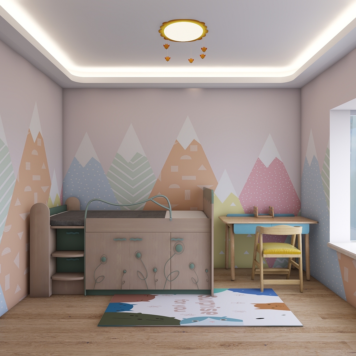 本案设计是专门针对小户型的次卧,儿童衣物比较多,为了满足儿童的休息又能储藏及学习。就把衣橱和床、以组合的形式,在旁边整洁一个书桌,这个在满足休息储藏的情况下又能很好的学习,搭配上北欧小清新的地毯,这个...展开