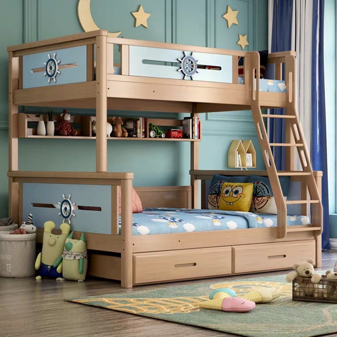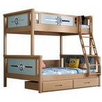 地中海风格已经成为了经典,特别是应用在儿童房上,有一种活泼又坚毅的冒险精神。带有船舵的上下床,以外观取胜,原木色和蓝色的搭配,清新自然,加上绿色背景墙的点缀,显得特别有朝气。