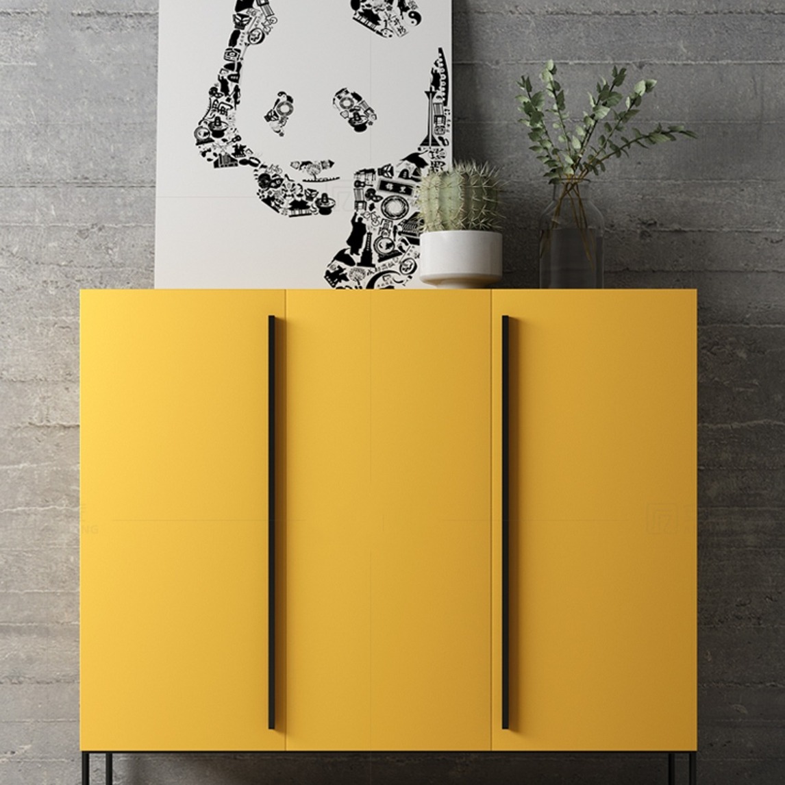 超薄的鞋柜设计,让空间节省不少,翻斗式储物,让收纳不在是问题,烤漆表面加上素色壁纸,使得整体空间淡雅自然。