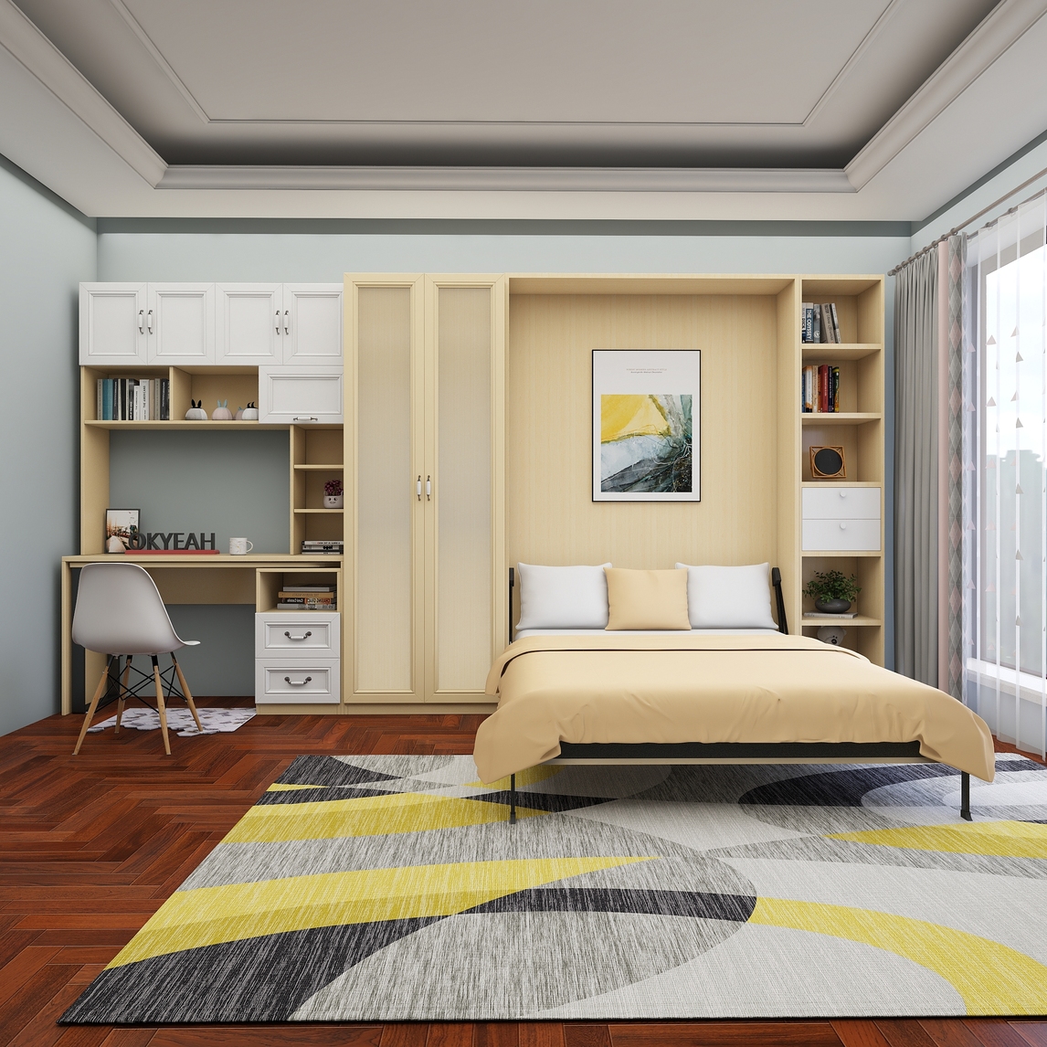 简简单单,纯木色系柜体,生活更贴近自然,可收纳壁床极大的提高了空间利用率,收起不占空间,活动空间增大,让我们每一处的空间都充分利用起来~