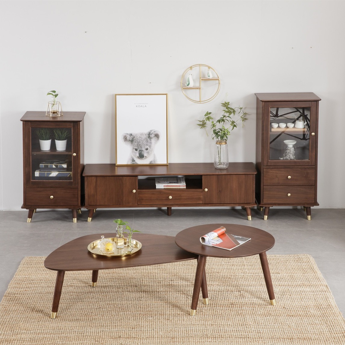 整套家具采用实木材质,满足美观的同时兼顾实用性,以胡桃色为主的家具搭配金色铜脚,不仅显的有格调又上档次