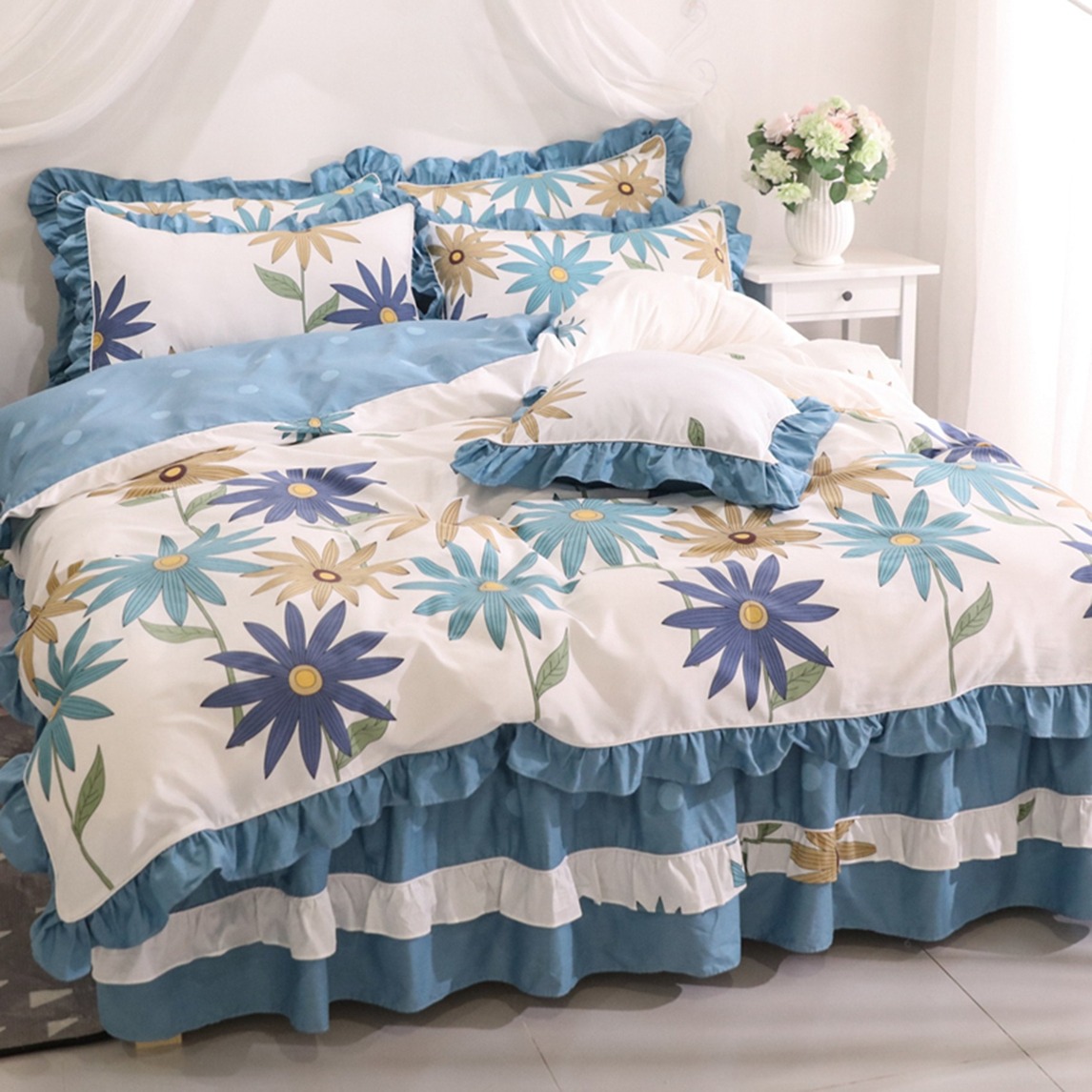 床裙式公主风四件套,采用清新的花卉图案设计,搭配上微皱的荷叶花边设计,满足你的少女心。精选亲肤纯棉面料,贴身舒适。