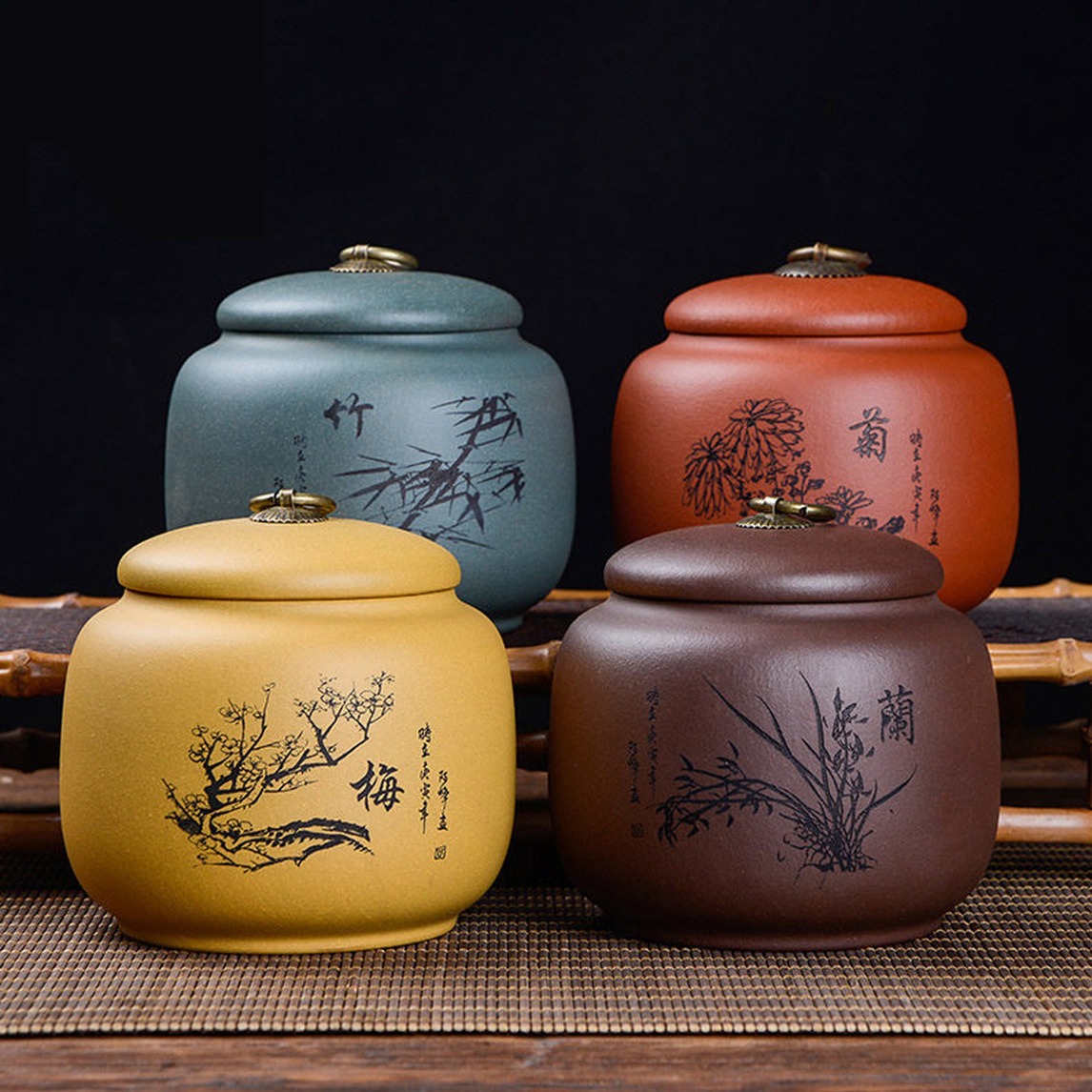 以“梅兰竹菊四君子”为题材,将紫砂作品与中国传统文化相结合,给这款古朴典雅的茶叶罐,增添了几分韵味!正所谓:“传统配传统”,文化配文化!一罐多用,除了保鲜茶叶之外,还能储藏干果、花茶、豆类、糖果之类的...展开