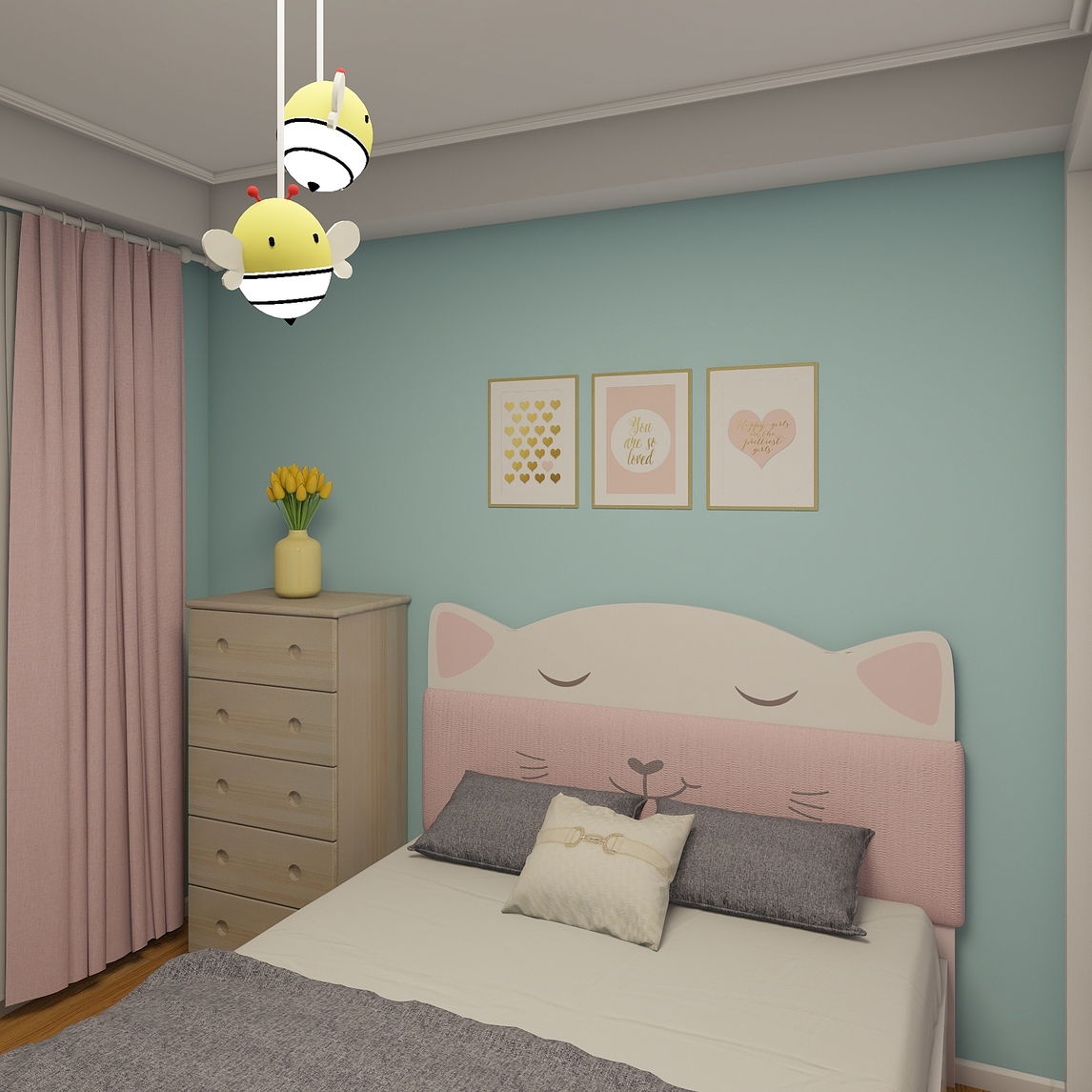 儿童房在色彩搭配上多以明亮、轻松、愉悦为主,采用强烈的对比色不失为一种好的装修手法,因为对比反差大、浓烈、鲜艳的纯色,能引起孩子们强烈的兴趣,简洁大方的床铺,粉色的墙壁给孩子们一种温馨,在色彩上与黄色...展开