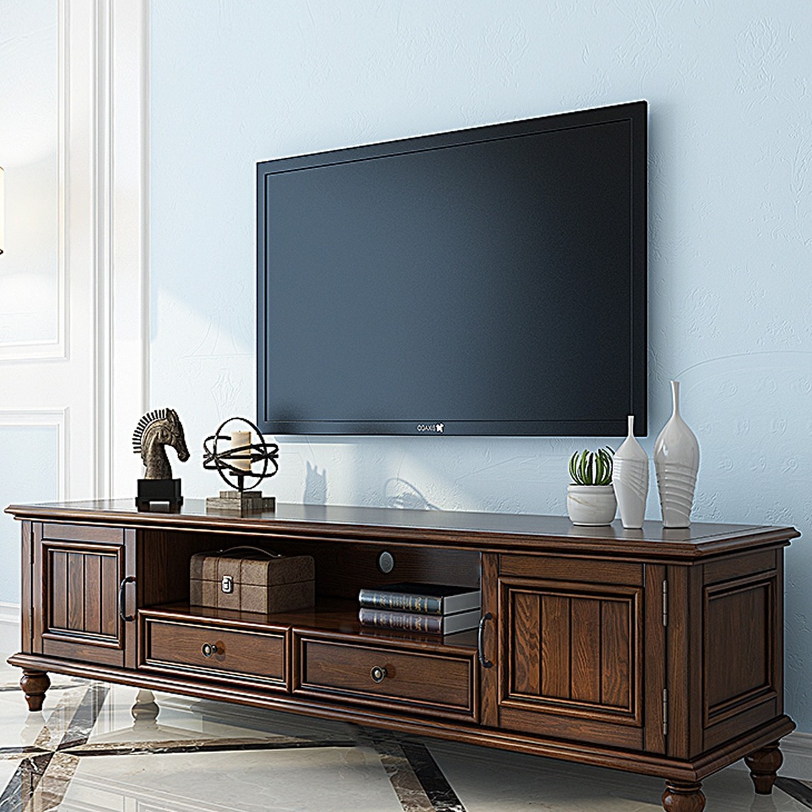 选用白蜡木材质制造的电视柜,表面喷涂环保油漆,将电视柜的每一个细节都展现出来,营造出舒适的视觉,让客厅更有质感。