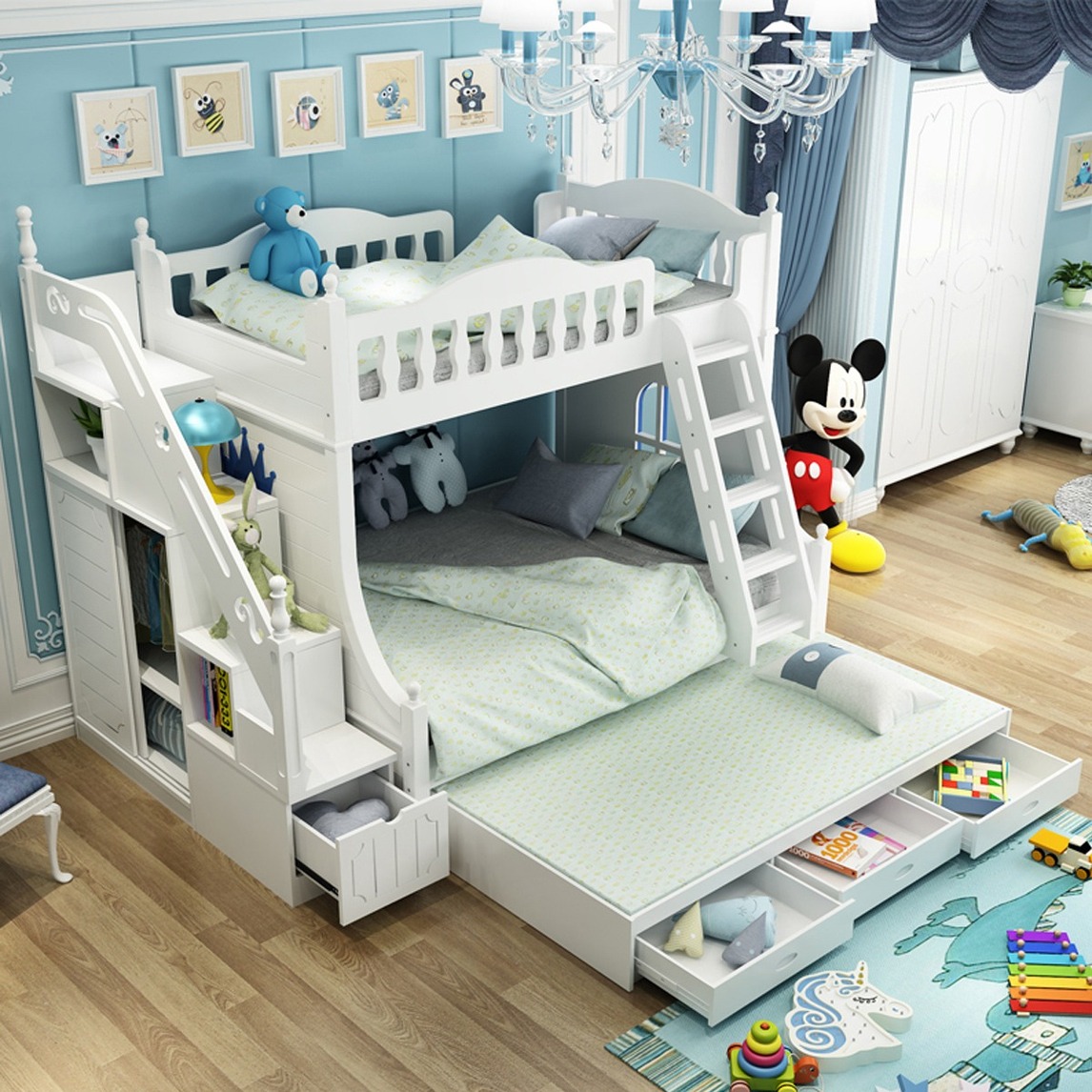 儿童床贴心造型,推拉门衣柜,专为小户型,梯柜能当衣柜使用,给房间省出7平米活动空间,让孩子睡在里面更舒适。