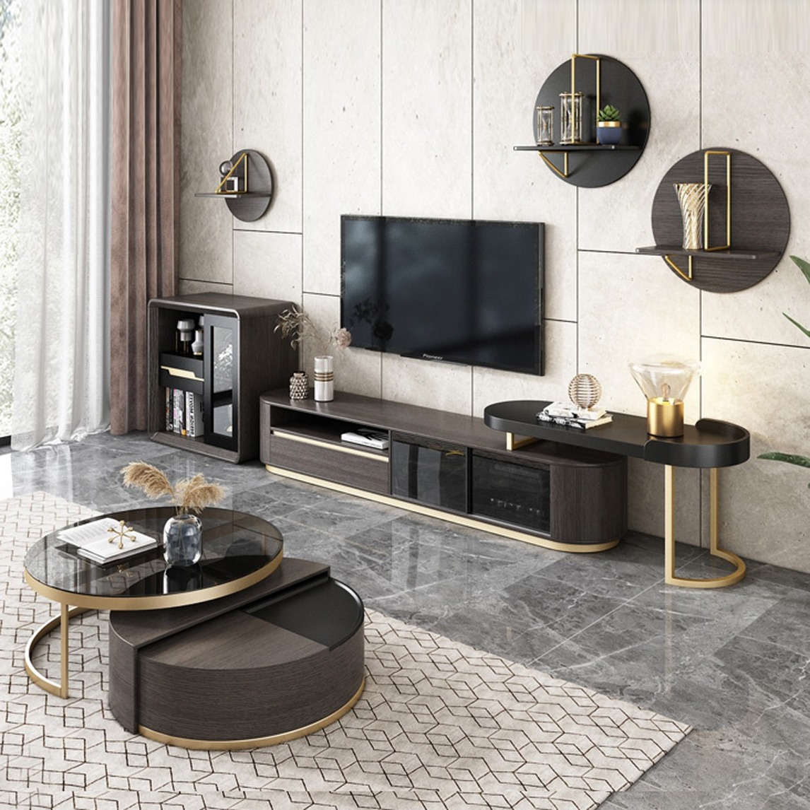 轻奢系空间更注重视觉感的统一。所以,客厅的主色调在搭配时,递进感不用过于突出。除了墙面、地板这些空间的主色外,客厅电视柜的色彩选择也很重要。比如带有高级优雅感的金系,能让客厅呈现出更棒的轻奢感