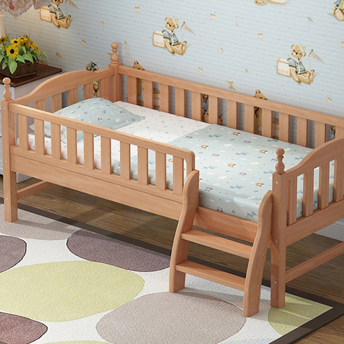 一张加高带护栏的单人儿童床,让孩子睡得更有安全感,家长也会更安心。四周还有床柱设计,增强了不一样的美感。