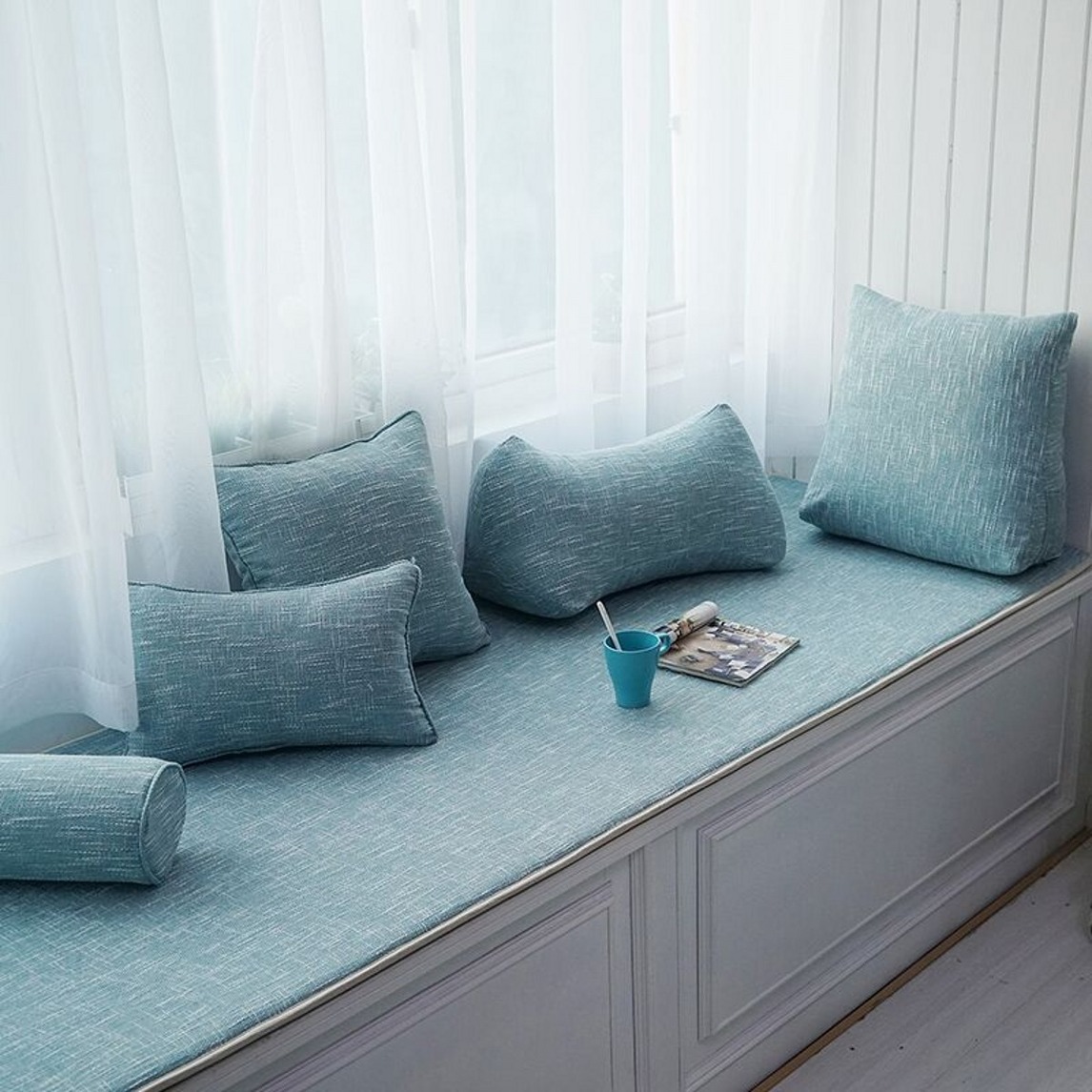 蓝色象征着勇敢与坚韧,将阳台一角打造成飘窗,可以让你拥有一个舒适的休闲区域,真的无需太多浮夸元素点缀,也能够让飘窗变得非常温馨。