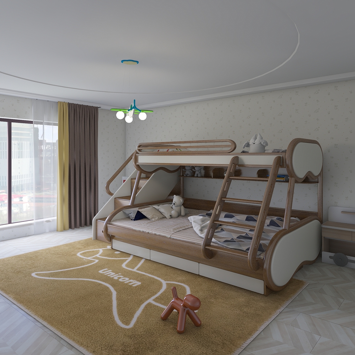 儿童房不仅是孩子的卧室也是孩子游戏和学习的地方,所以实用性一定要强。一间儿童房通常会陪伴孩子的整个童年,所以房间的设计应该是多功能性的。设计一个休闲游戏区,孩子可以尽情玩耍,发挥自己的创造力。房间内设...展开