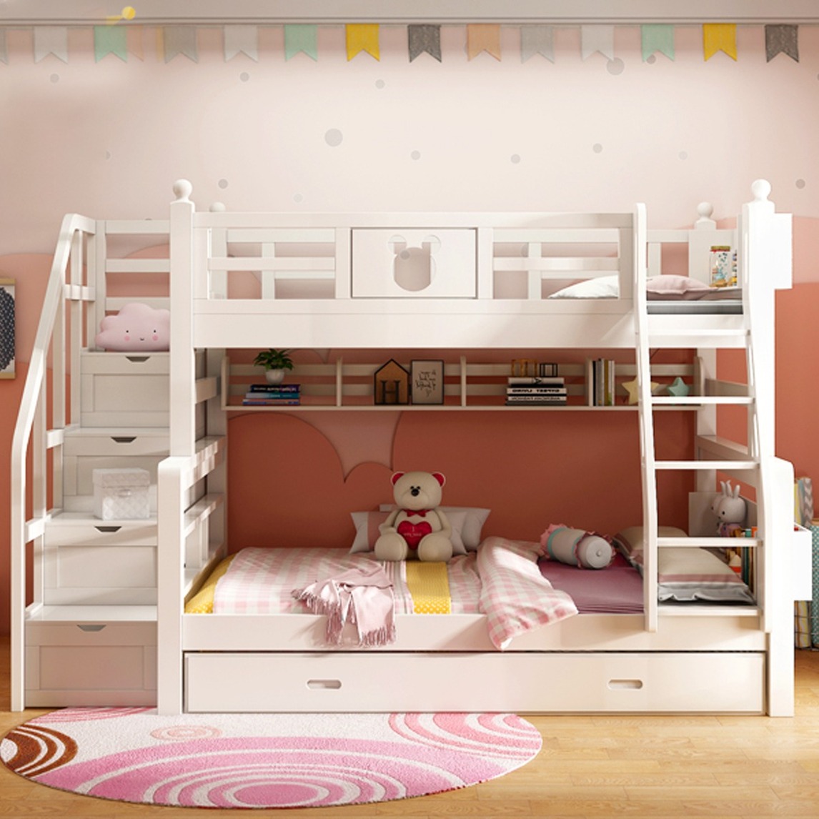 一张有着简约纯净色调的儿童床,放在卧室里会让孩子从视觉就开始觉得舒适。儿童床实木制造,坚固耐用,一直陪伴孩子成长。