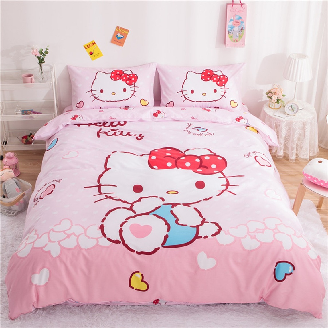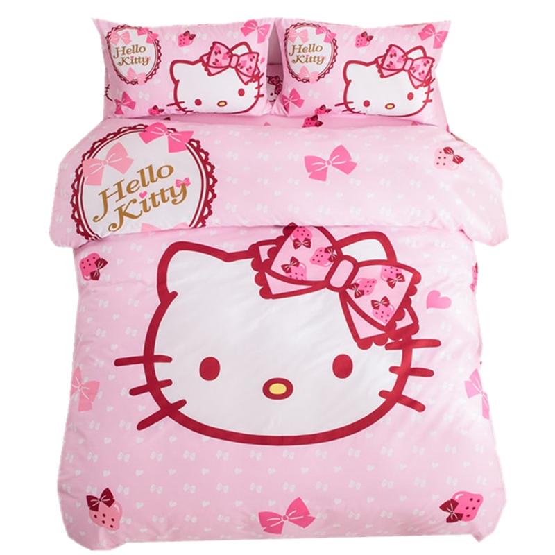 HelloKitty卡通动漫四件套,60S全棉面料给予舒适的触感,时尚花边点缀多了几分气质格调,秋冬盖着正适合。