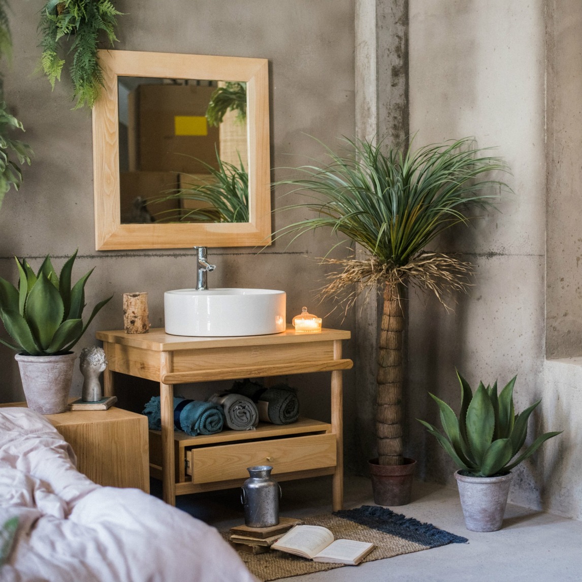 这样的卫生间,想必连生活都变得精致起来,充满热带风情的龙舌兰大小盆景,加持实木桌椅的质朴大气,让整个空间都高级起来,好看的不得了。