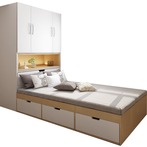 一张衣帽间床满足全部衣服的收纳还多了一张上床,同时组合榻榻米下床,不仅能储物还能满足睡眠的需求,非常适合现在的独居公寓或者是二胎家庭,满足多数女生衣帽间的梦想