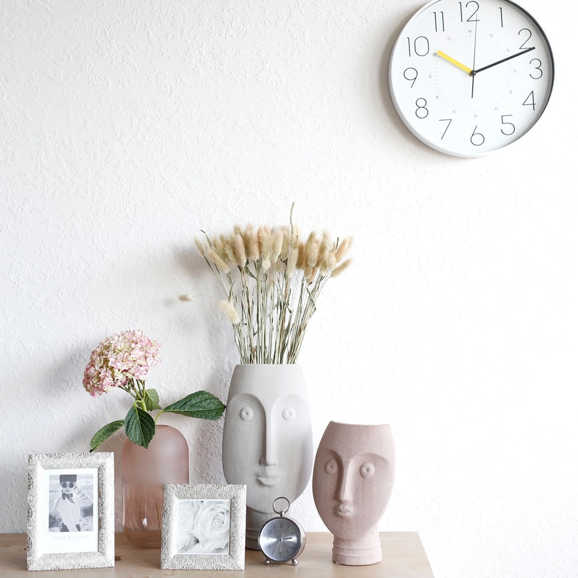 电视柜怎么摆都没美感?学会这几招轻松打造富有质感的电视柜小空间!选择电视柜左边或右边角落,摆上富有设计感的花器,不仅可插花亦可作摆件使用;精致的相框摆台和钟饰都能带来点缀效果。