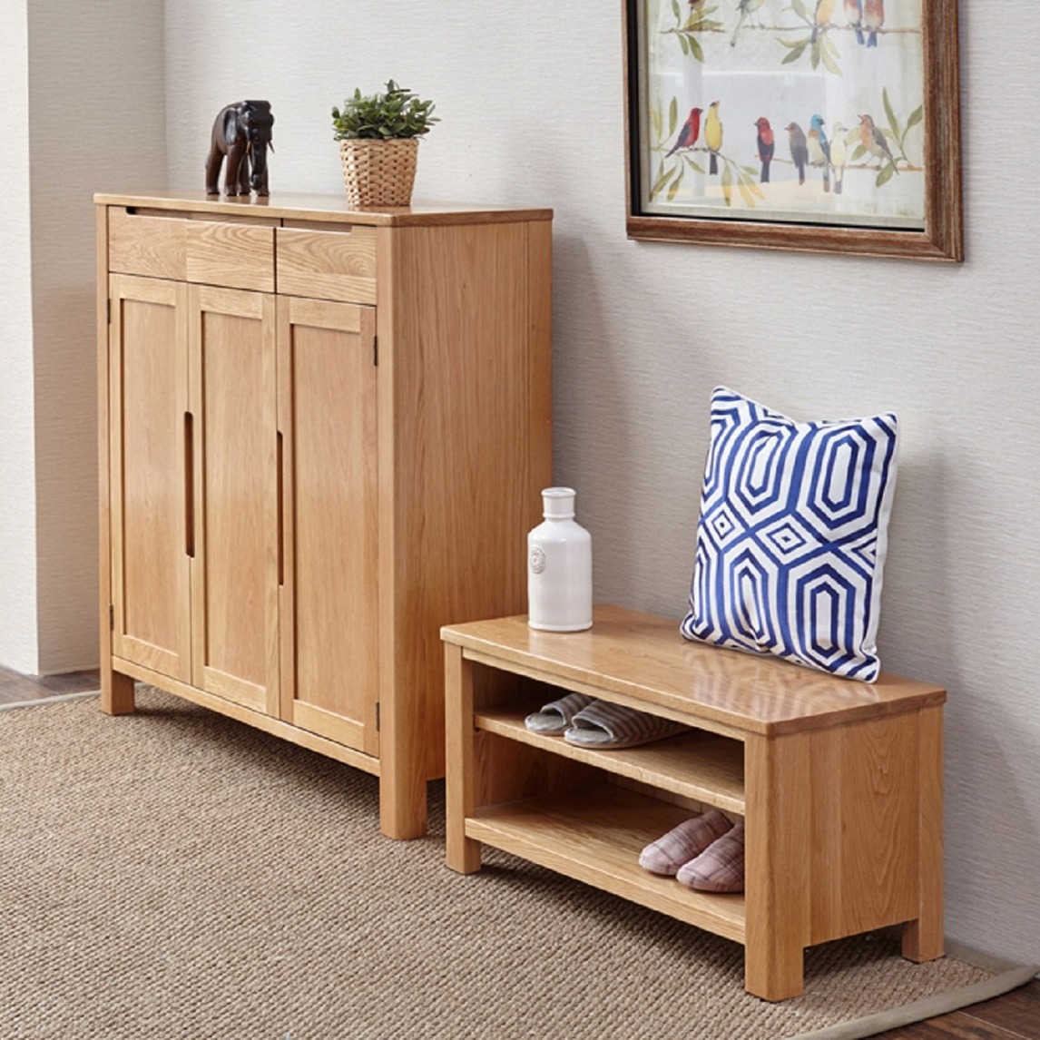大部分家庭都有进门换鞋的习惯,如果是站着换鞋,老人小孩会很不方便。可以在鞋柜旁放一个换鞋凳,可以坐,又可以收纳鞋子。