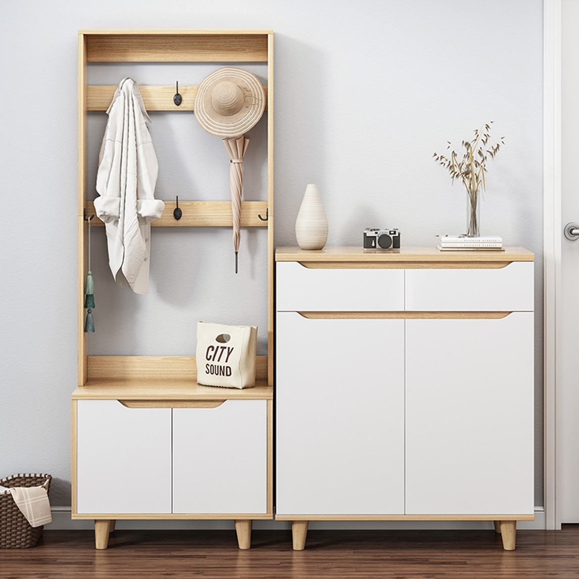 原木色搭配纯净的白色,整张储物柜都流露着优雅质朴的气质,带来宁静祥和的家居氛围。内部空间大,可以收纳许多家庭物品,适用性强,可以当鞋柜、餐边柜、杂物柜等等。