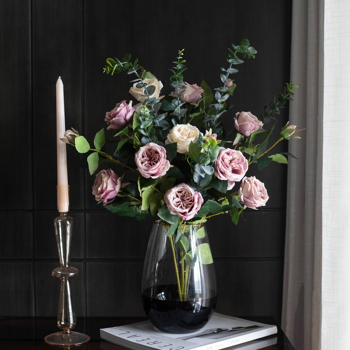 在玫瑰上,选择了做旧复古的仿真赫本玫瑰花。静静盛开在电视柜上,旁边搭配进口的vintage玻璃烛台,平凡的生活瞬间有了浪漫的气息。