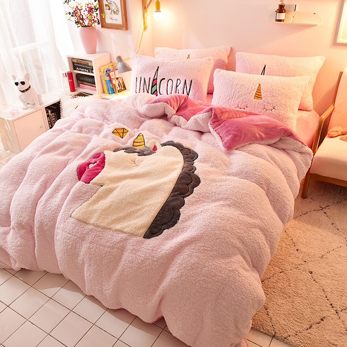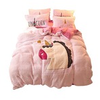 女孩子很喜欢的一套床品,童话感十足的独角兽,配上甜甜的粉色,少女心炸裂,面料是柔软又保暖的羊羔绒,适合睡懒觉哦。