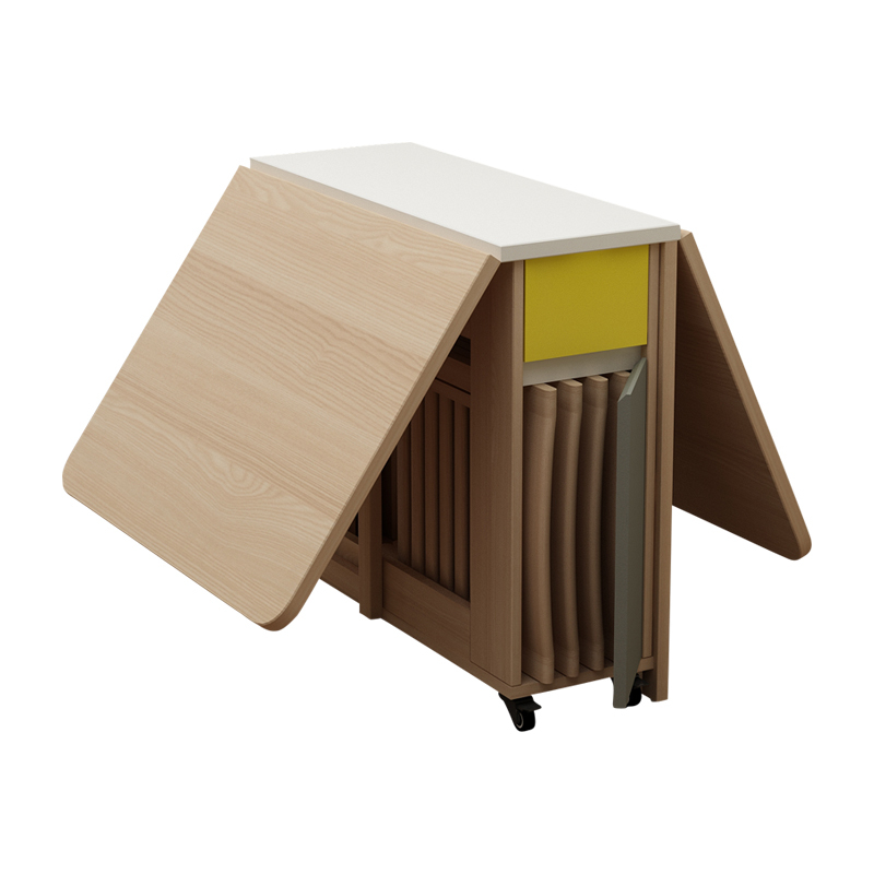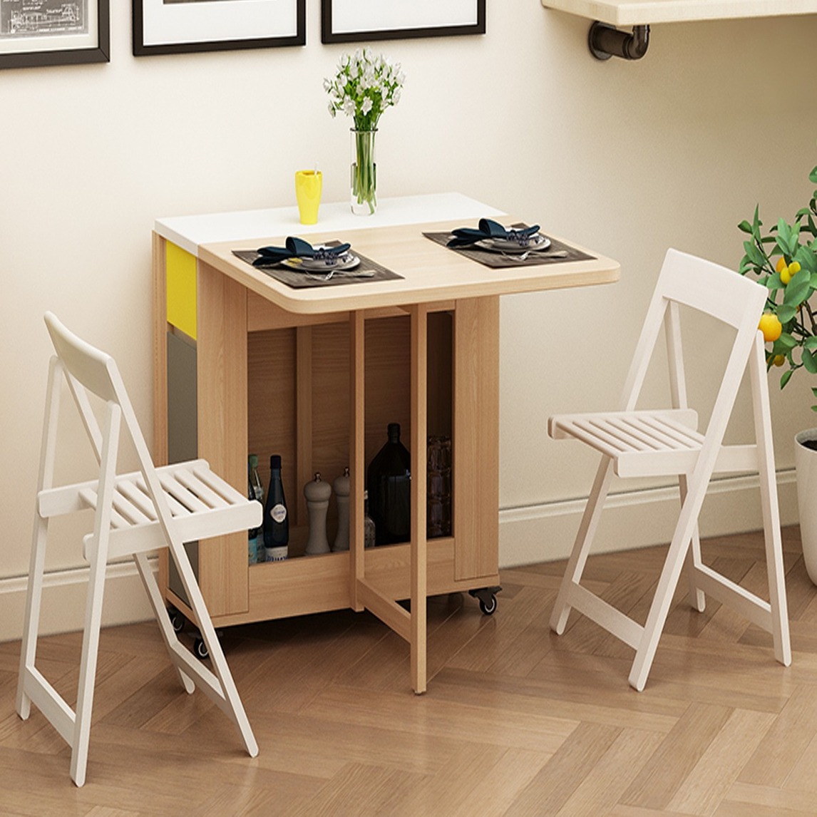 小户型房子因为空间面积比价小,通常没有独立的厨房和餐厅,因此选择可折叠的餐桌,将桌子折叠起来节省空间,有客人来时,可将餐桌展开,非常方便实用。
