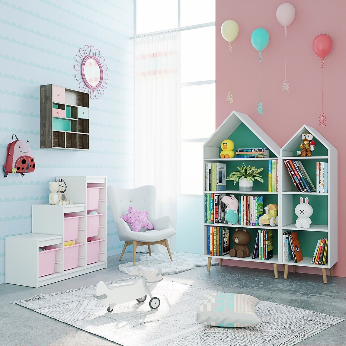 趣味小房子造型,搭配阶梯款玩具收纳柜,告别凌乱儿童房,瞬间变整洁,采用E0级实木生态板,环保无味道,安心陪伴宝宝每一天