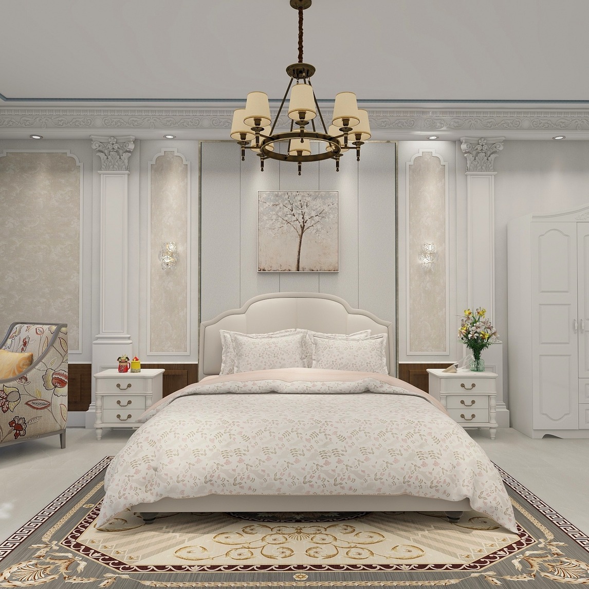 细腻如玉,整个空间采用浅色调,营造出舒适温馨的时尚卧室,精致的线条与温暖的床品细腻的融合在一起,在细节里体现艺术的传承。