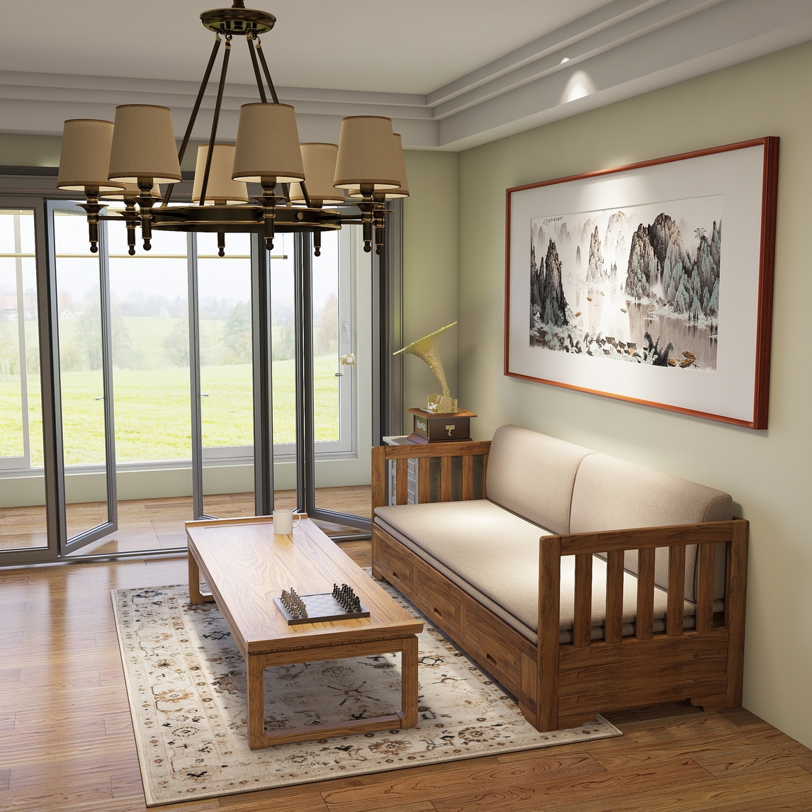 整体风格主要采用复古的装修特色,客厅复古大气吊灯照亮客厅,新中式客厅装饰山水画,新中式禅意茶几,实木推拉两用沙发罗汉床榻。墙面采用立邦金装净味五合一套装 28L,净味环保,耐擦洗,防水透气,高遮盖力。...展开