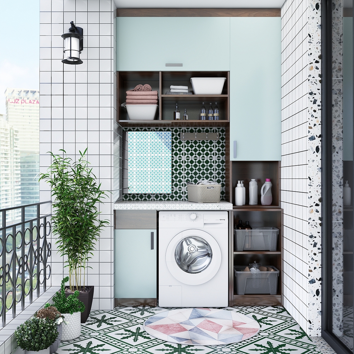 阳台毕竟是家中一个很重要的功能区,如果家在南方的话,一般我们都会选择把洗衣机放在阳台,并且会特意的做一个柜子来放置洗衣机。本案的阳台设计是采用了整体定制衣柜,墙地分别用了墨绿色瓷砖和黑线小白砖,混搭出...展开