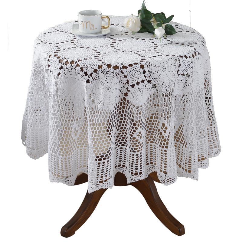 样式和花型都很简单的一款棉线编织钩花桌布,和各种家居风格和家具风格都很搭配,既能保护餐桌,又能增加不少美感。