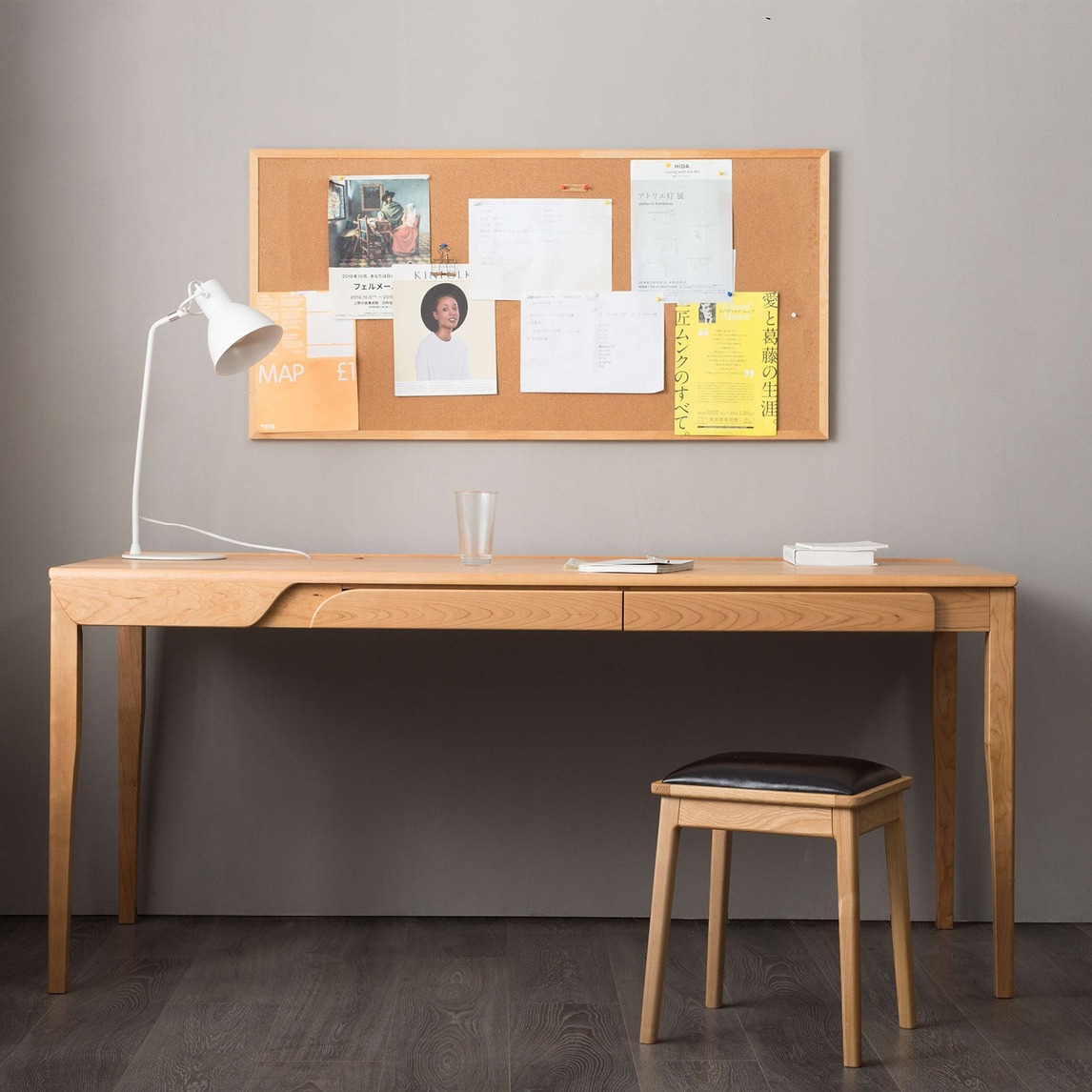 一桌一椅一墙,看似要求不高的书房,实则大有讲究。北美进口樱桃木的书桌表面清晰可见的大山纹,温润的质感。实木软包凳舒适的坐感。整个空间恰到好处的布置。极简的书房,也得用心选家具!