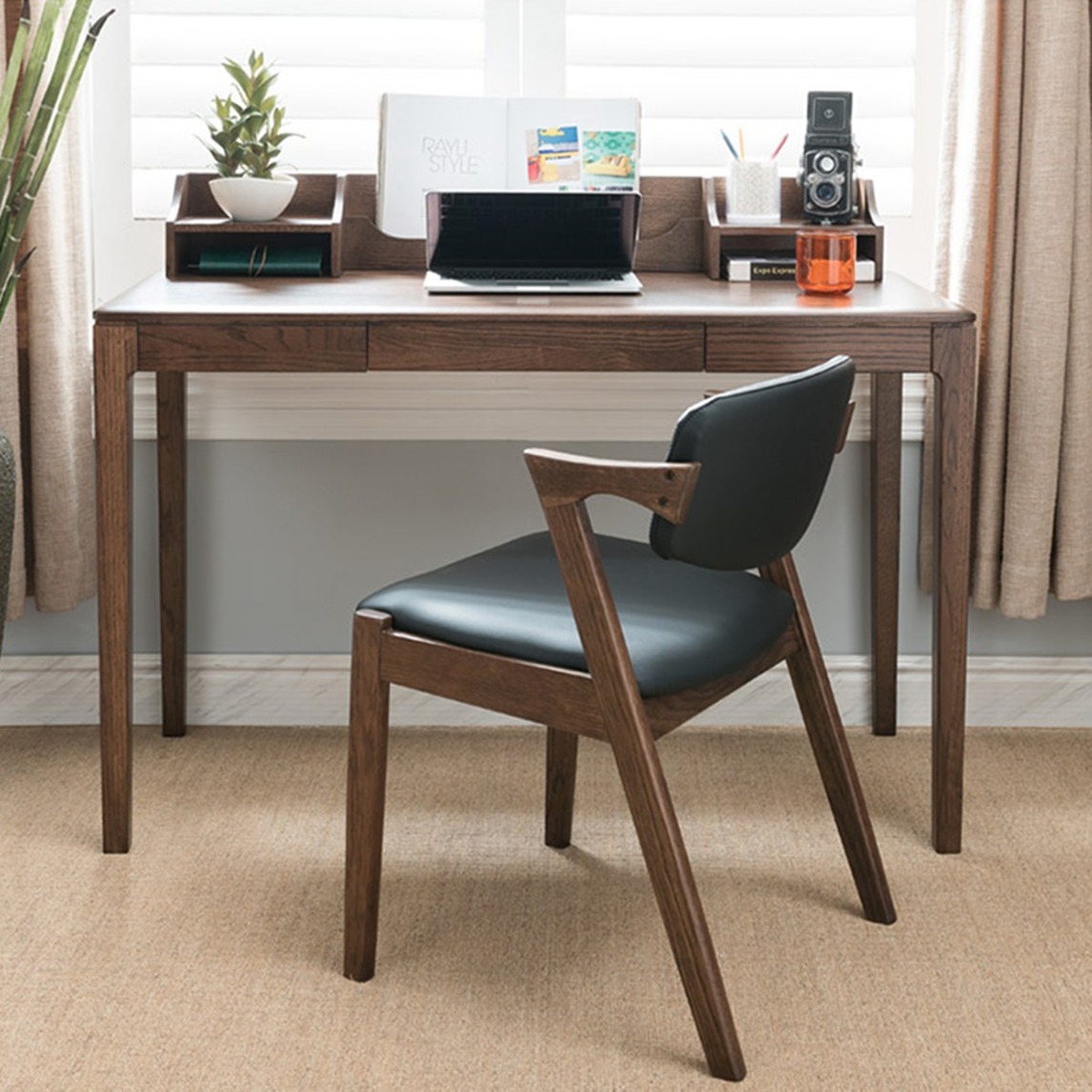 实木书桌椅,简洁的造型靠窗而放,温润的木材光滑有质感,显得特别高档。有人说书桌面对窗户容易分心,我却认为书桌面对窗户让人开心。所有的布置都要按照自己的喜好来,生活是自己的,不要受他人干扰。