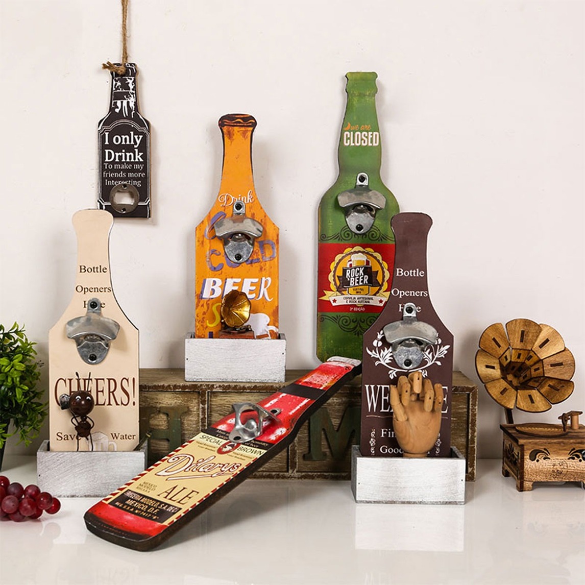 一次酒脱的开瓶,开启与美酒的邂逅;造型独特,既可以用来开啤酒,同时还能挂在墙上作装饰用,不管是酒吧、家居或者饭店等都很适用。
