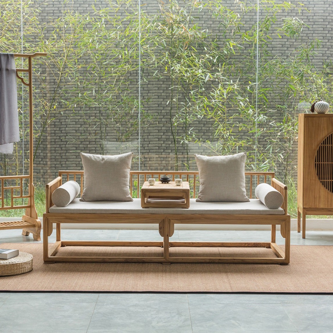 新中式罗汉椅家具在设计上打破了厚重与沉闷的格调,显得更为简约清雅、赏心悦目,但是仍存在着中式的气质与神韵,打造一种传统生活方式的现代演绎。