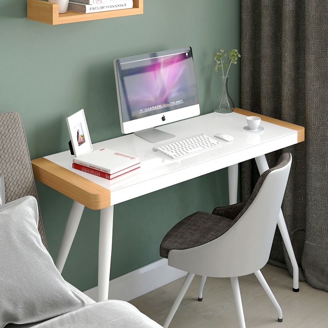 脱离书房的沉稳格调,试试这种轻松娱乐的设计,钢化玻璃材质的书桌,线条流畅稳固,整体没有多余的元素添加,这一刻只属于你的私人时刻。