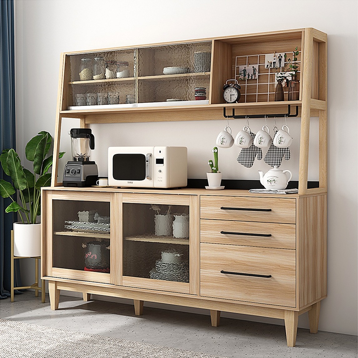 日常用的餐盘碗筷、茶壶和饮品,总是显得零散无序,餐桌旁摆放一款暖木色的餐边柜,将琐碎归整,整齐又充满生活美感!