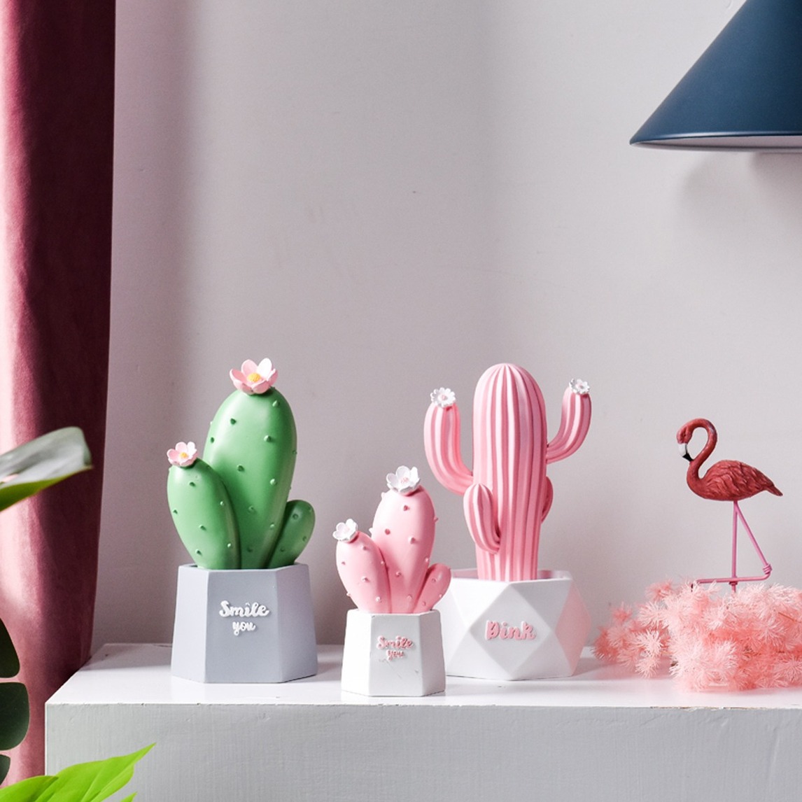 树脂材质仙人掌摆件,采用植物与花盆一体成型工艺制造,牢固耐用,有着美观简约的质感,整体颜色饱满,清新雅致。
