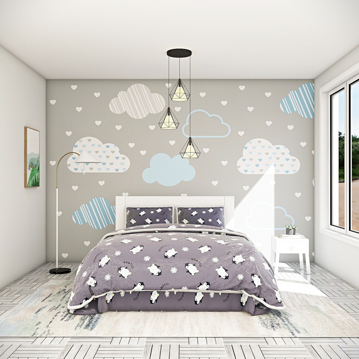 在对儿童卧室的构造上,无需太多的元素,简单的卡通墙纸搭配着同样有着卡通元素的床体就能轻易的塑造出一方柔软而又明净的空间了,让整个空间呈现出一股充满趣味的美好味道,非常符合孩子的心理,有趣而又不显浮夸,...展开