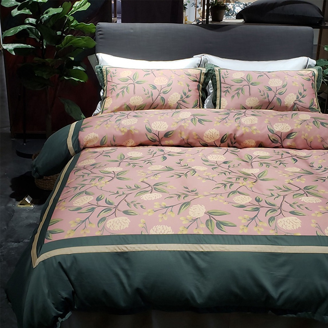 优雅浪漫的印花点缀床品,尽显美式风情!60支长绒棉四件套,100%纯棉,绿色环保光泽度高,触感柔软舒适又细滑,带给您舒适的睡眠时光。
