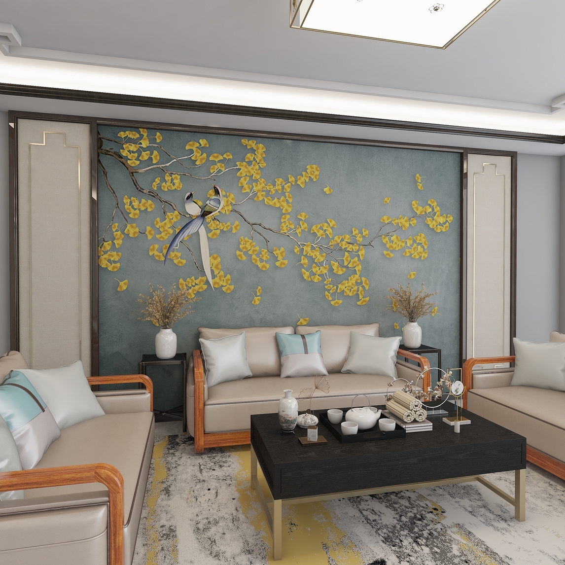 整体搭配泾渭分明,深与浅、冷与暖、精细与粗犷的精巧组合,浑然一体。 花与叶的灵性、金属与木纹的质感,赋予空间无限的静谧,温润如玉、静而愈美。 就如背景墙壁画上栩栩如生的银杏花鸟图一样,静中有动,演绎出...展开