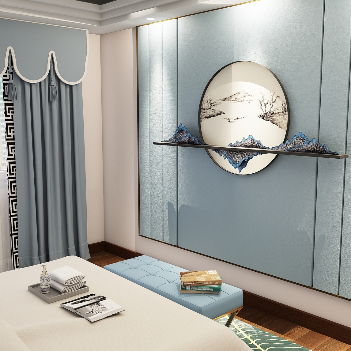 不受任何约束与限制中式风的壁挂搭配现代脚踏,将不同时代、不同地域的文化内涵完美地结合在一起,充分利用空间形式与各种材料的巧妙搭配,创造出最具个性化的家居环境。