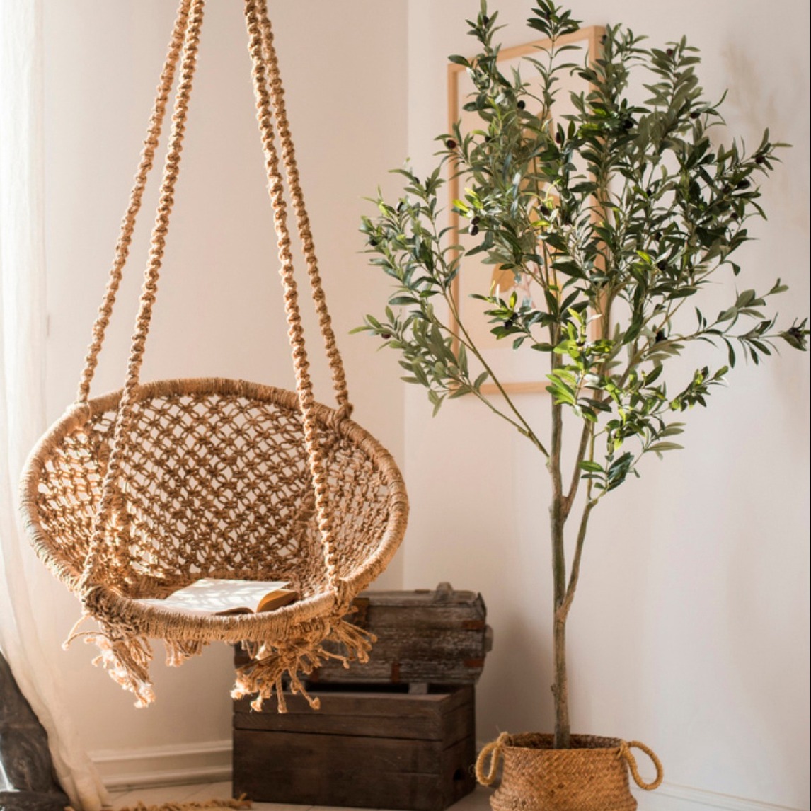 阳台是晒太阳的好去处~ 装一个舒适的吊床是必不可少的~ 搭配一个绿植,会有一种身临森林,沐浴阳光的感觉~